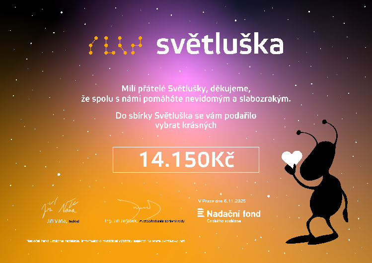 Nadace Světluška je dlouhodobým projektem Nadačního fondu Českého rozhlasu, který pomáhá těžce zrakově postiženým. Možná jste již slyšeli o kavárně POTMĚ či koncertě Světlo pro Světlušku. Běh pro Světlušku je další iniciativou podporující tuto nadaci.
