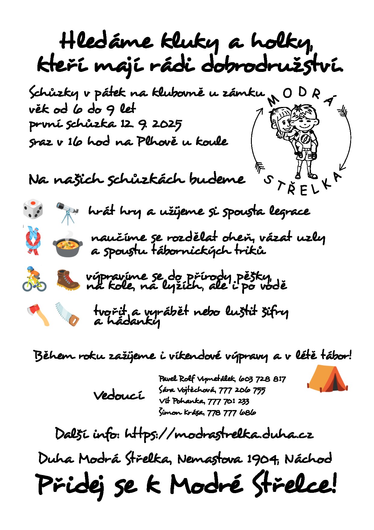 Začínáme | první schůzka bude v pátek 12. 9. 2025 |